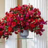 Bold, elegant, and ready to bring grand beauty to your wedding ceremony and celebration, this gorgeous flower arrangement sets the tone for a richly romantic day. Bringing together a collection of eye-catching blooms, including fuchsia gilly flower, burgundy carnations, burgundy peonies, red roses, red hypericum berries, red tulips, red gladiolus, dark red Oriental Lilies, burgundy roses, and red LA Hybrid Lilies, this piece was designed to bring a graceful sophistication to your day. Displayed