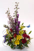 This beautiful arrangement is decorated with a butterfly and features Liatris, Lilies, Roses, Carnations, Delphinium, Daisies and greens