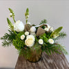 Celebrate the season with this elegant Christmas arrangement featuring an angel ornament keepsake. This festive centerpiece is thoughtfully designed with lush evergreen sprigs, and delicate white flowers, evoking the magic of a winter wonderland. At its heart, a beautifully crafted angel ornament stands as a symbol of hope and peace, perfect for cherishing or gifting to a loved one. This arrangement brings warmth, beauty, and the spirit of the holidays to any home, offering a timeless keepsake that can be treasured for years to come.