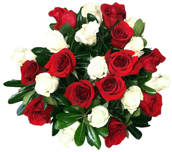 12 Red Roses, 12 White Roses with Pittosporum greens