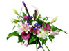 A colourful combination with Gerberas, Lilies, Irises, Anastasia, button Mums, mini Carnations and exotic greens