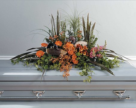 This lovely casket spray incorporates the things they loved with fresh flowers and greens