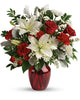 A vision of love! This luxe bouquet of fragrant white lilies and radiant red roses, hand-delivered in a ruby vase, is the perfect expression of your feelings.