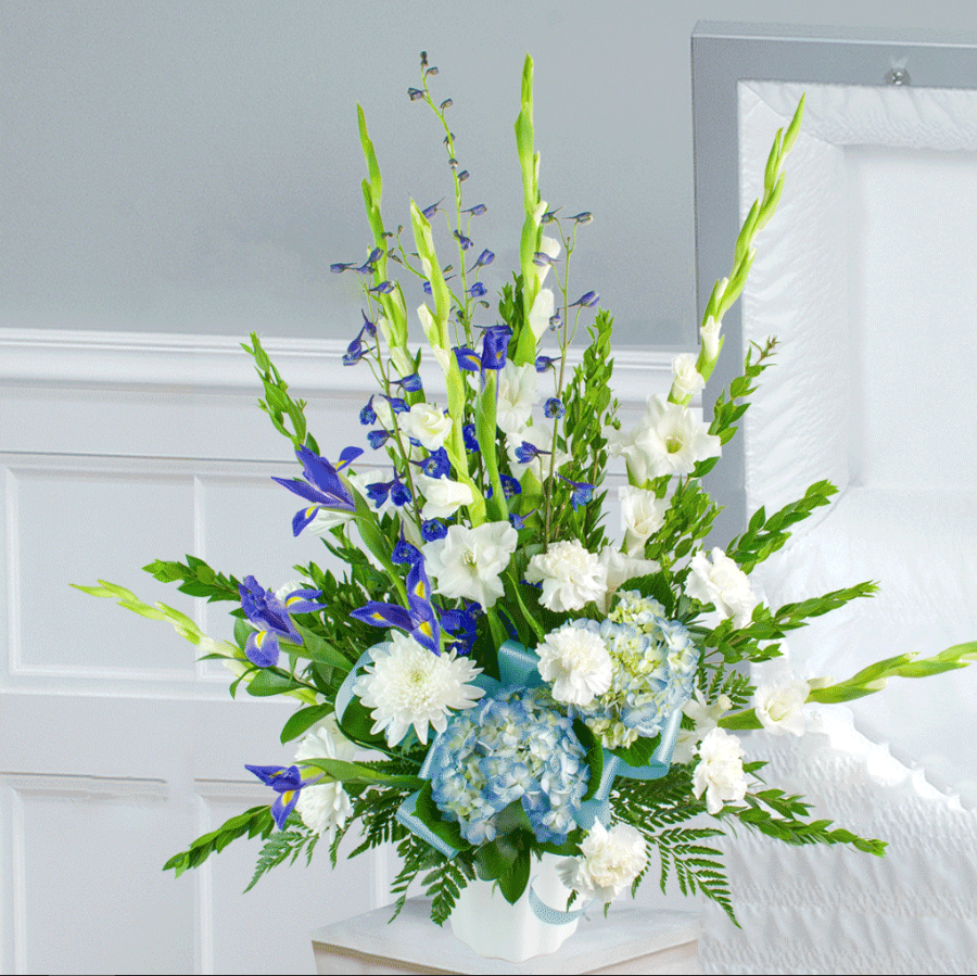 In a modern array of exotic flowers, the Blue Heaven luxury tribute is the perfect sentiment. Ideally sent to a service and paired with other items of the same collection the Blue Heaven tribute makes for a graceful sendoff..