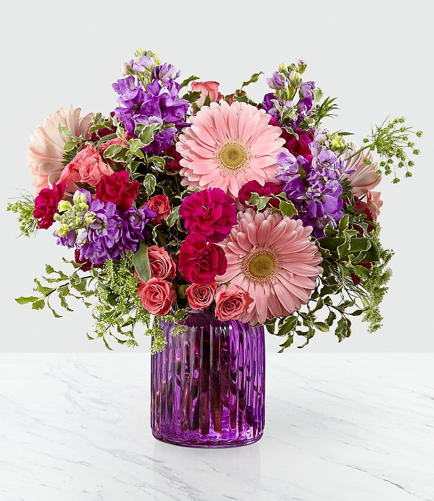 Purple Prose is a flower bouquet with all the right stuff - a lovely mix of fresh flowers in breezy shades of pink, purple, lavender and more at a wonderfully reasonable price. A great way to make someone smile!
