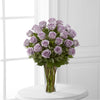 An enchanting bouquet of lavender roses sweetly touches her heart. Paired with seeded eucalyptus in a stylish glass vase, these lovely roses are a perfect gift.
