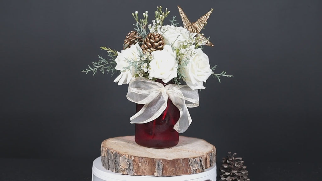 A simple and charming arrangement. Roses in a small jar showcases the beauty of the roses making it a delightful and understated floral display. Shown with white roses.