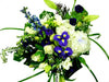 This lovely combination consists of Hydrangeas, Roses, Irises, Lilies, Delphinium, Lisianthus, filler and exotic greens