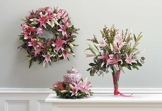 Serenity Wreath, Vase Arrangment & Urn Wreath