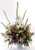 This Sympathy Tribute features Glads, Lilies, Mums, Orchids and greens