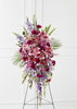 The Tender Touch™ Standing Spray creates an elegant display of beauty and color to enhance their final tribute. Lavender gladiolus, Stargazer lilies, fuchsia carnations, purple larkspur, lavender Peruvian lilies, lavender chrysanthemums, sword fern fronds, emerald palm fronds and other assorted greens are gorgeously arranged to create a sophisticated standing spray. Displayed on a wire easel, this arrangement will add to the sophistication of their service with each fragrant bloom. Stand not included.